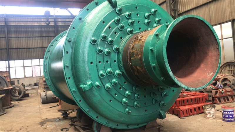 溢流型球磨機(jī)筒體用厚度15-36mm的鋼板焊接而成,在筒體的兩端焊有鑄鋼制造的法蘭盤,用螺栓將端蓋2和3與法蘭盤連接在一起,二者須精密加工和配合,因為承載磨礦機(jī)質(zhì)量的中空軸頸焊在端蓋上。在筒體上開有1-2個人孔,供檢修和更換襯板用。筒體和端蓋內(nèi)部敷設(shè)有襯板5。端蓋上的中空軸頸支承在主軸承4上。主軸承常用的是滑動軸承,其直徑很大,但長度很短。軸瓦用巴氏合金澆鑄,與一般滑動軸承不同之處在于僅僅下半部有軸瓦。整個軸承除軸瓦用巴氏金澆鑄外,其余用鑄鐵制成。由于球磨機(jī)的跨度和載荷很大,將發(fā)生一定程度的撓曲,而且制造和裝配的誤差也難以保證準(zhǔn)確的同心度,因此主軸承制成自動調(diào)心滑動軸承,為防止軸瓦轉(zhuǎn)位過大而從軸承座中滑出,在軸承座與軸瓦的球面***放一圓柱銷釘。
